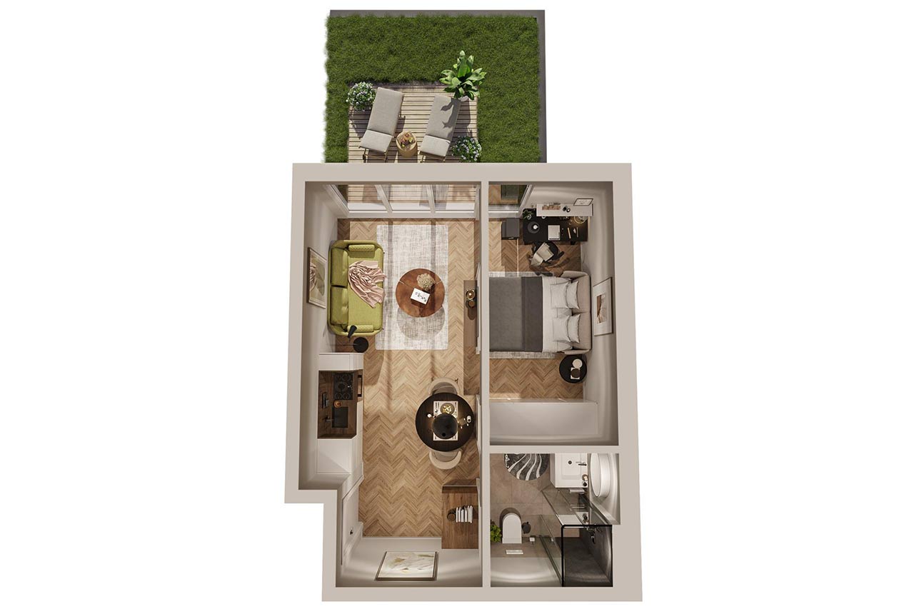 So geht modernes Wohnen. Alles was man braucht, um sich von einer anspruchsvollen Arbeit zu erholen. Ihre Ruheoase inmitten brodelnden urbanen Lebens.