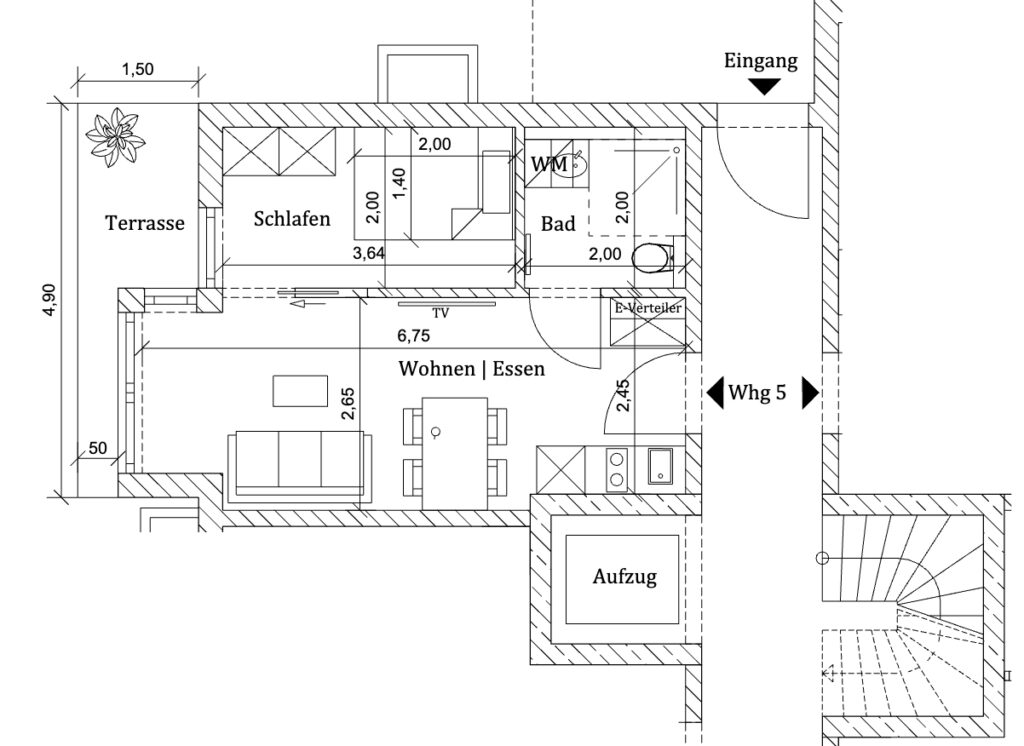 Die hier angebotene Wohnung befindet sich im Erdgeschoß mit einem Terrassenanteil von 50%.