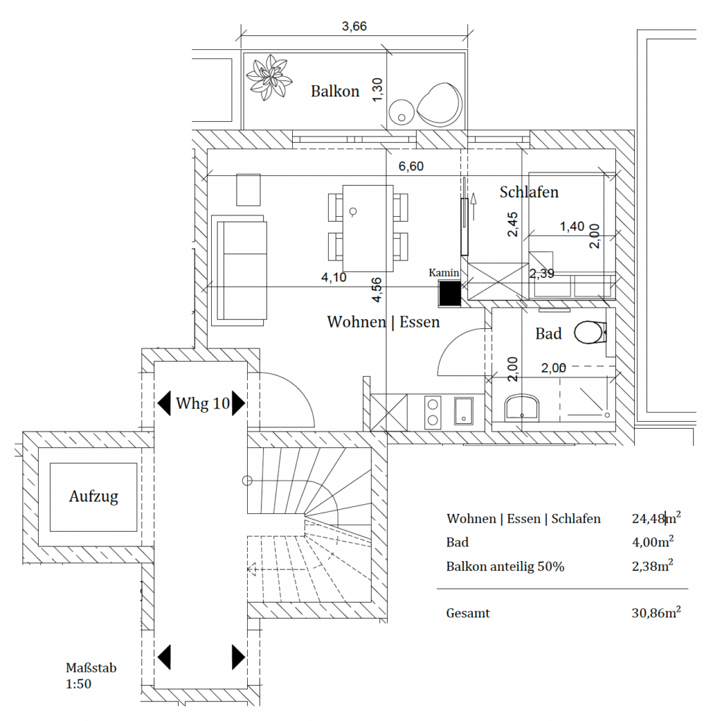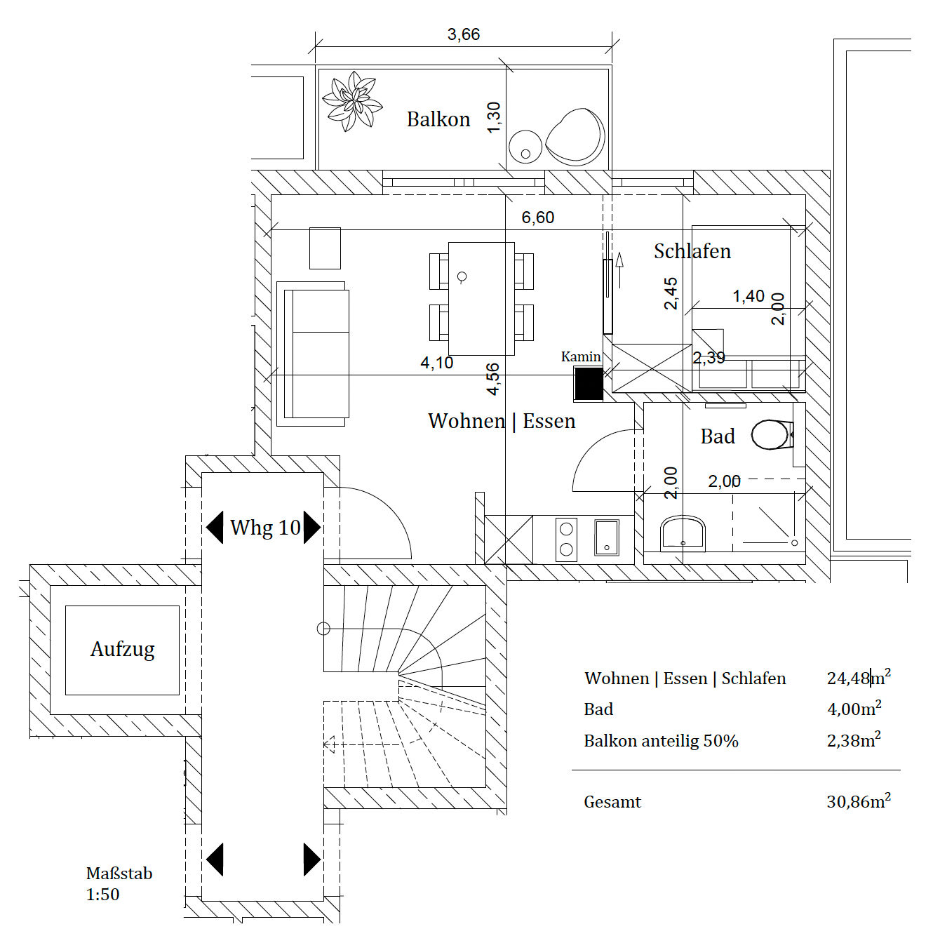| Wohnen - Essen - Schlafen 24,48 m² |