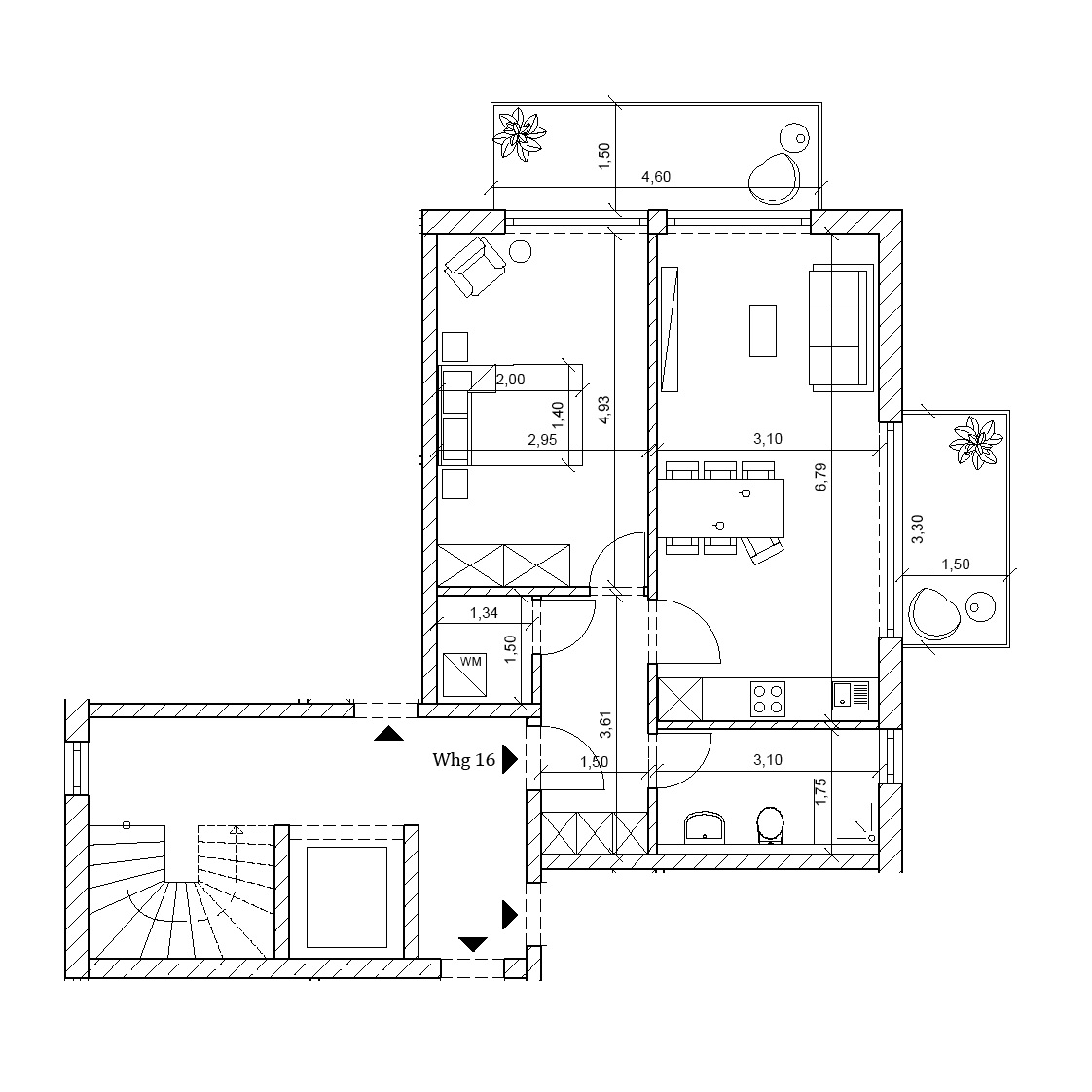 Die Wohnung ist Teil einer kleinen Wohnanlage im mediterranen Stil in München-Obergiesing.