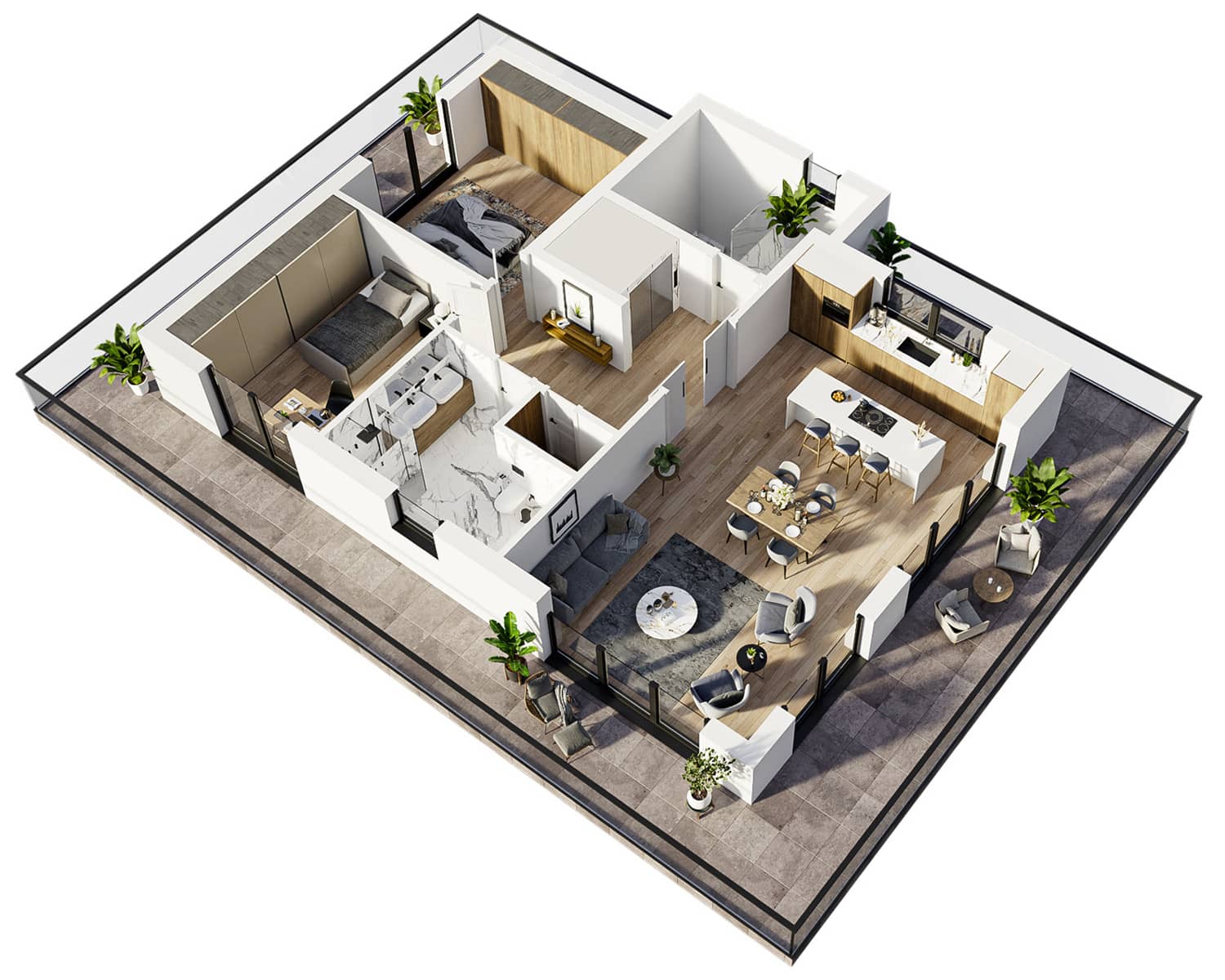 In einem mediterran inspirierten Neubau im Münchener Fasanengarten entstehen derzeit 19 exklusive Eigentumswohnungen, von denen die meisten bereits bezugsfertig und teilweise schon bewohnt sind. Hoch über allem thront ein luxuriöses Penthouse mit eigenem Aufzug, der direkt in die Wohnung führt. Dieses einzigartige Penthouse steht kurz vor der Fertigstellung.